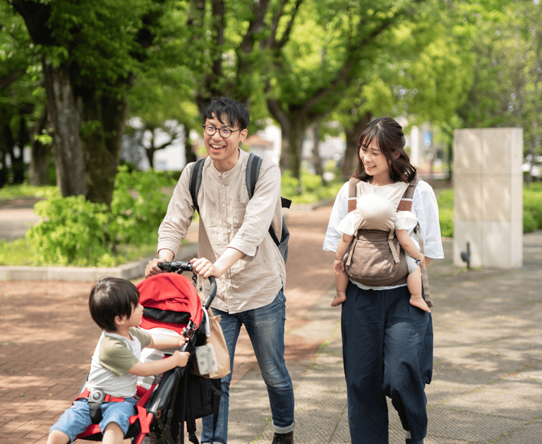 赤ちゃんを抱っこしながら、バギーを押しながら、